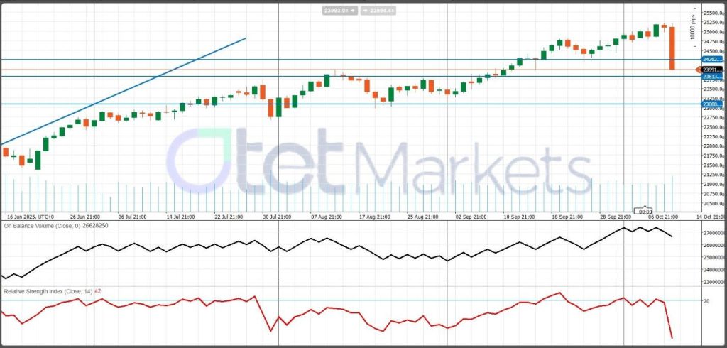 تظل معنويات السوق هشة ولكنها مرنة، حيث يوازن المستثمرون بين تقارير الأرباح وعدم اليقين السياسي والمتعلق بالسياسات. أثارت تعليقات الرئيس السابق ترامب تقلبات، لكن قطاعات التكنولوجيا والذكاء الاصطناعي تستمر في توجيه الزخم. يقع الدعم الرئيسي بين 23,800–23,000، بينما تظهر المقاومة بالقرب من 24,500–25,000.