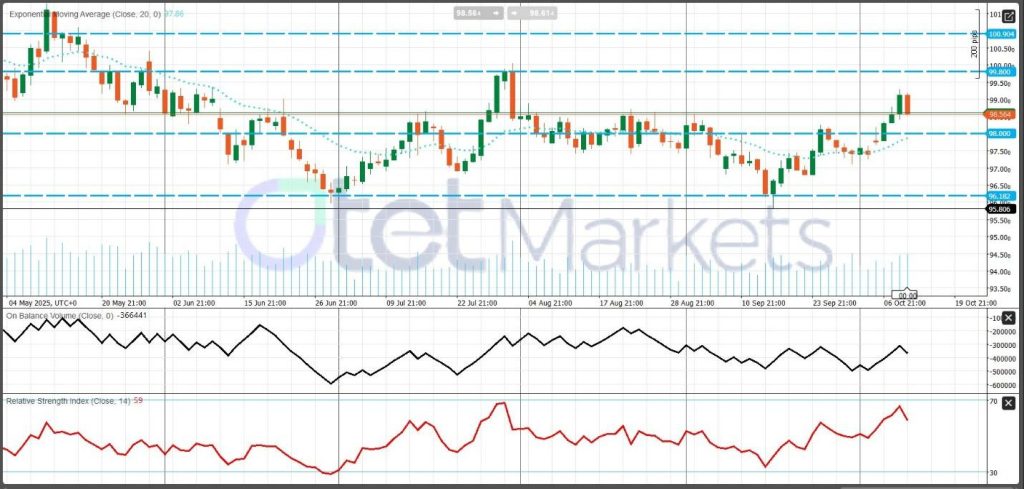 يحافظ الدولار على ميل محايد إلى قوي، مدعومًا بعوائد سندات الخزانة المرتفعة والمراكز الحذرة. في ظل ندرة البيانات، لا تزال معادلة الأخبار الجيدة تدعم استقرار الدولار هي السائدة في الأسواق. يظل مؤشر DXY إيجابيًا طالما بقي فوق 98.00، مع مقاومة بالقرب من 99.80-100.90 ودعم عند 97.00-96.50.