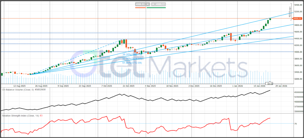 تداول الذهب الفوري بالقرب من 4،987 دولار للأونصة في 24 يناير 2026، موسعاً اتجاهاً صاعداً قوياً حقق +11% منذ بداية العام بعد مكاسب بنسبة +64% في عام 2025. لا يزال الارتفاع مدعوماً بمزيج من الطلب على الملاذات الآمنة والمشتريات الهيكلية للبنوك المركزية، حيث يقدر المحللون أن مشتريات البنوك الوطنية في عام 2026 قد تبلغ في المتوسط ما يقرب من 70 طناً شهرياً، مما يوفر قاعاً دائماً للطلب. كانت الجيوسياسية هي المحفز المهيمن الاحتكاك بين الولايات المتحدة وغرينلاند، والتوترات المتعلقة بإيران، والحرب الروسية الأوكرانية رفعت علاوات المخاطر بشكل متكرر بينما عززت التوقعات لسياسة نقدية أسهل هذا الطلب. تشير الاستطلاعات إلى أن حوالي 95% من المشاركين يتوقعون أن يبقي الفيدرالي أسعار الفائدة ثابتة في اجتماع 28 يناير، وتشير مؤشرات مديري المشتريات الأخيرة إلى توسع أمريكي معتدل، مما يساعد على منع توقعات التضخم من إعادة التسارع بشكل حاد.